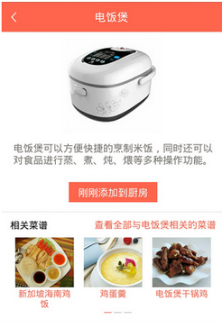 2、扫厨电:在家里扫一扫厨房电器外包装上的条形码,即可快速查询该款厨电的使用方法和专用食谱。