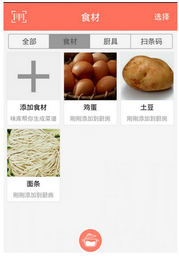 1、根据用户需求组合菜谱,用户只需将冰箱里的食材、厨房里的电器和调味品轻轻一划添加至应用里的“我的厨房”,味库就能根据其家中厨房的情况,智能组合推荐马上能做的菜谱;