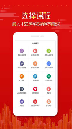 在线直播课堂开展的培训有学历提升、二级建造师、初级会计师、教师资格证、证券从业资格证、银行从业资格证、期货从业资格证、基金从业资格证、在职研究生、人力资源师和心理咨询师等在线学习。