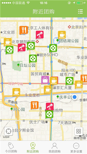 2.附近团购:随时随地为您推荐周边的团购信息。