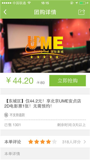 3.筛选:可按团购分类、地理位置、团购范围筛选,可按距离、人气等排序,快速帮您定位团购信息。