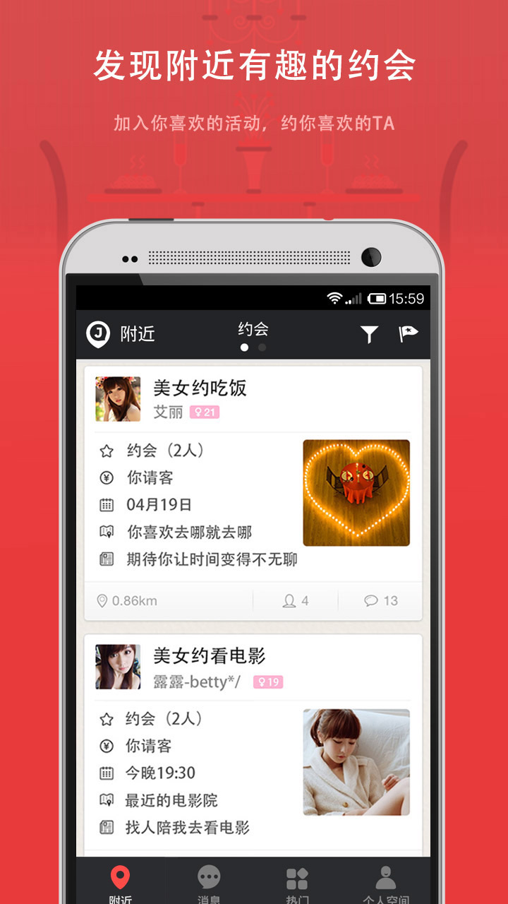 ★约会交友第一应用,用户数量超过1000万,国内最大的线下约会交友社交平台,每天有超过百万的单身男女在微聚举行线下聚会及约会,帮你快速约到你想找的TA。