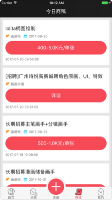 签下合同开发的社交APP平台,绘玩APP功能:1、用户可在App内免费求画;2、求画可分享给好友,让其帮忙扩散转发;3、画手可将作品上传至对应求画;4、画手可编辑个人资料增加自身关注度;5、作品可分享、点赞增加热力值;6、正式画手可以在红包雨列表抢红包;7、后续版本绘玩APP开发案例将上线打赏内购功能!