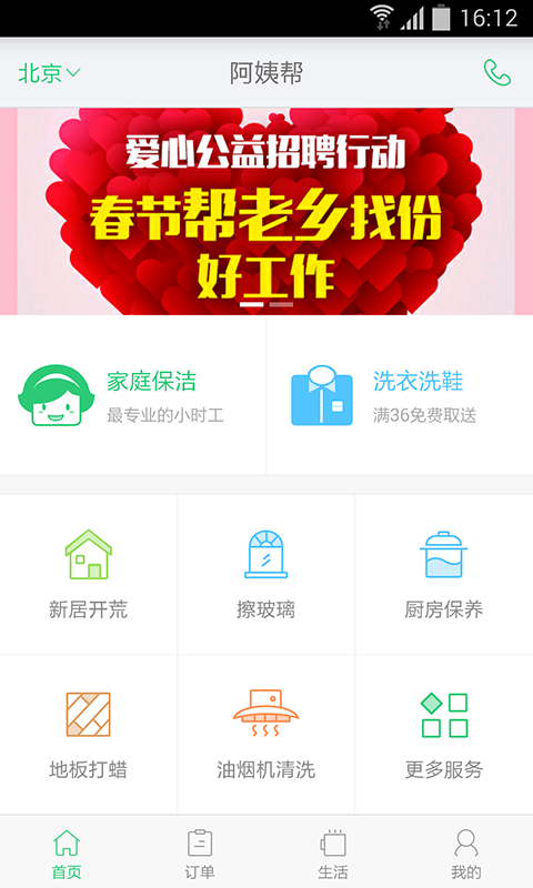 阿姨帮,专业便捷的互联网家庭服务中心!我们提供家庭保洁、洗衣、做饭、新居开荒、家居保养、家电清洗、管道疏通等上门服务。 您通过阿姨帮手机软件预约后,客服小妹将为您安排上门服务,服务完毕您可对服务进行打分和评价,帮助我们不断改进服务质量。统一价格让您更放心;上门服务让您更省心;五星级服务让您更舒心。