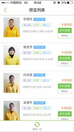 懒人家政app让户主足不出户,轻松发布家政招聘,平均60秒完成系统智能匹配,让您轻松选阿姨。我们为您推荐的每位阿姨都通过懒人家政系统考核,专业认证,品质安全。更有完善的客服和法务支持体系,真正让每个使用者,省心,放心,安心。