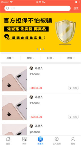 6、我要买:这里可以找到平台内所有的商品,也可以通过定位找到附近的商品。