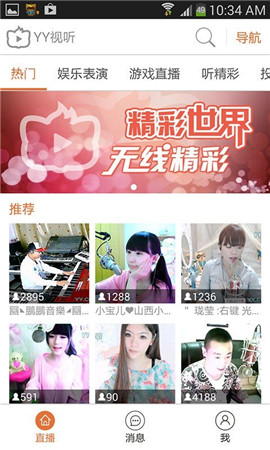 YY视听是一款手机直播APP软件。在YY视听中你可以上直播间看美女,进入直播小课堂学习知识,还能观摩游戏大神操作技巧,你也可以与好友、陌生人进行语音视频聊天。