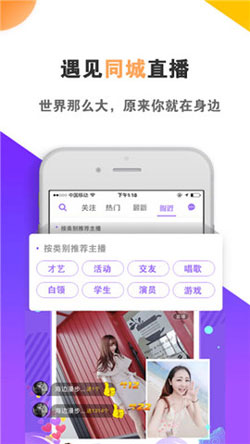同城直播APP是人气爆棚的手机直播平台,我们不是秀场,我们只是真实生活画面的搬运工!这里有本地美景、才艺展示、生活趣闻、花间奇闻、聊天互动、唱歌娱乐、各类活动、同城交友。。。同一个城市,遇见同城直播,让生活变得更加绚丽多彩。