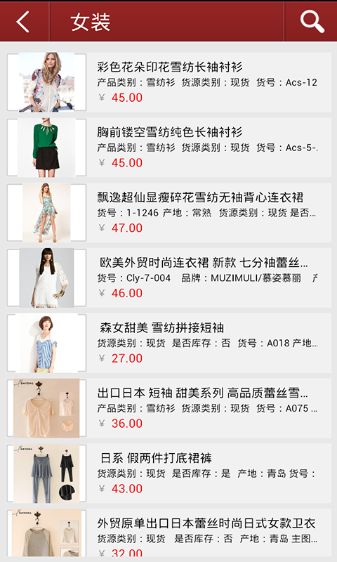 外贸服装商城——为您提供最新的外贸服装行业信息和资讯!行业资讯、供求商机、展会展览功能全面,是外贸服装行业的手机交流平台。为广大客户提供便捷和及时的外贸服装行业信息和资讯。以便捷的浏览方式、强大的应用功能,最新的资讯信息,为广大客户展开了一个丰富的外贸服装行业画卷,时时刻刻的为您更新,让您爱不释手。