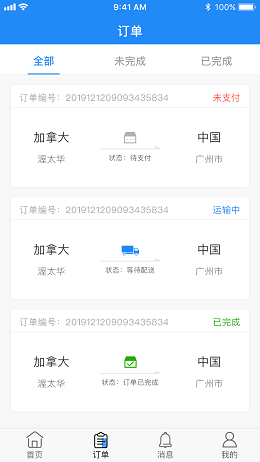 ⑥我的订单:跳转到我的订单,显示未完成、已完成、全部订单列表,点击任何一个订单,可查看订单详情