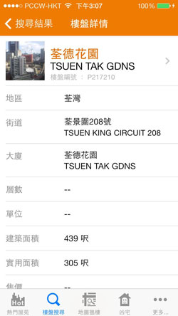 2、樓盤搜尋:用戶可按多個不同條件搜尋合適樓盤 ;