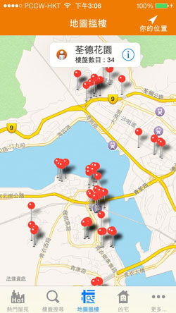 3、地圖搵樓:用戶可用衛星定位搜尋鄰近樓盤資料;