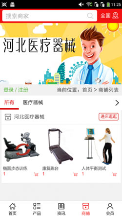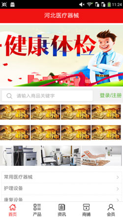 河北医疗器械app不仅具备购物、查询订单、搜索商品、行业资讯和产品评价等常用功能,而且还实现了手机版特有的会员注册登录、广告位、招商开店等功能。目标是整合当地品牌商、生产商、经销商,为商家和消费者之间提供一站式解决案。欢迎下载使用!