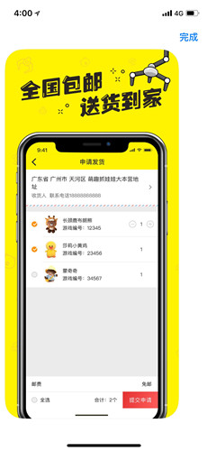 3、娃娃寄存——抓中的娃娃可立即要求发货,也可先寄存在应用内,凑齐两件即可包邮,更优惠