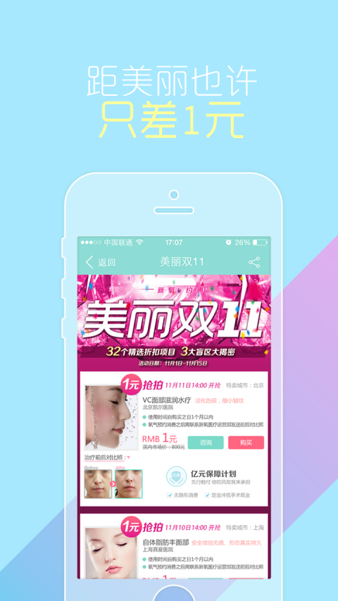 人气超旺变美APP,微整形美容护肤特卖·点评·社区,真实整形案例分享,带你真正了解整形,让你美的安心!