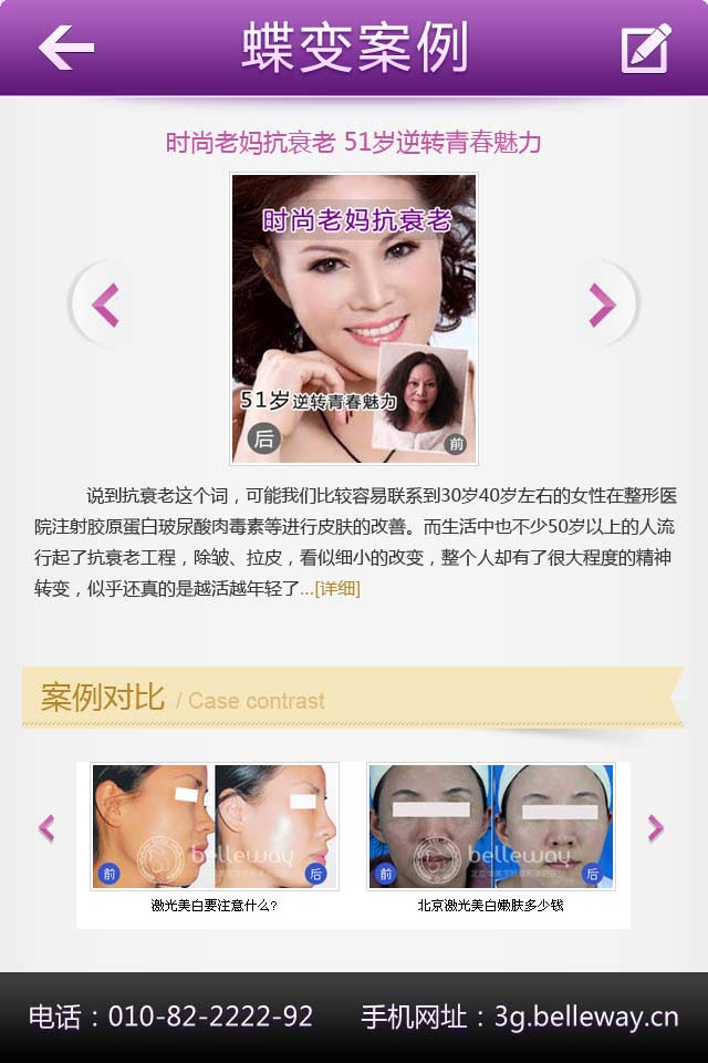 华美宝丽整形是专为爱美女性打造的整形美容前沿资讯的生活助手软件,是集整形美容常识、最新疑问、行业动态及美学测试为一体的专业咨询交流平台。北京京日友好医院、北医三院等三甲整形博士等业内权威整形美容大师长期在线,随时随地为用户提供最全面最专业的整形咨询。软件还提供了在线预约和医疗导航等模块,可随时查看和预约。下载到手机上,就能随时随地关注时尚整形美容信息。