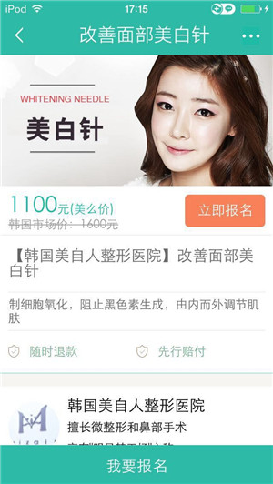 美么整形APP开发界面很简洁,操作简单方便!非常不错!