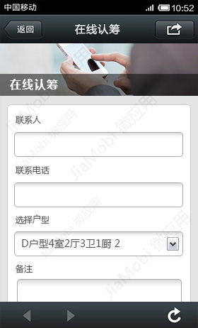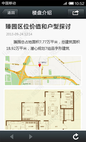 楼盘的微官网,直接把房子在手机端展示出现,让潜在客户随时了解至楼盘情况。更是一个掌上楼盘入口,比传统的折页宣传更直接有效。