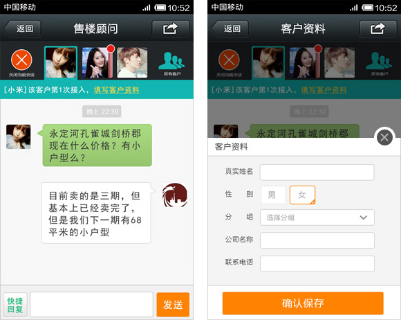微应用的微信客服系统,可以将销售顾问微信化,一旦有顾问有问题咨询,可以即时得到销售顾问的直接反馈,提高成单率。