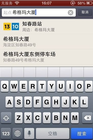 软件会直接将起点设为最近的知春路地铁站,这样即使你记不住站名也能找到地铁了。