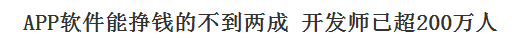 新闻是这么描述的,说是有一个手机APP开发师注意到有一则广告说月薪8000元起,移动终端软件工程师,广告的后面就是招生信息的广告,并且该广告信息上显示说,只要有计算机基础的,大专以上学历,只要经过5个月的实训,零基础高中以上学历的,实训10个月,并且称,只要实训合格者,合格后直线进入手机APP开发名企。虽然从广告上看出手机软件开发行业的现状正在快速兴起和壮大。但是,这以导致了APP开发跟风的导火线。