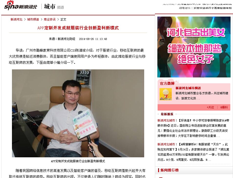 在移动APP业务上跟酷蜂有所合作,小编有幸得到采访91直播