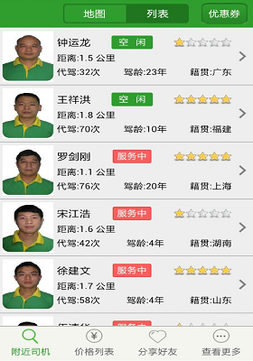 2. 最快速用户可以查看代驾司机等级,评价,一目了然。直接呼叫,10分钟即可到达。快才是爽!