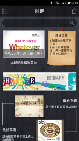 用随便APP,购买您的一日三餐,简单、便捷、实惠、美味!瞬间变大厨! 随便,开启您的生活新态度!上传菜谱到随便,开一家专属于您的私厨!1、可浏览、学习用户上传的菜谱;2、可购买各种菜谱所需的新鲜食材;3、上传菜谱可挣取随便币,即销售食材的提成