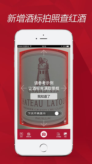 通过酒标拍照识别及关键词搜索,提供方便快捷查询红酒资料的功能。利用红酒世界网强大的数据库展示酒款的产区、葡萄品种、酒庄、获奖、评分、权威评价等全方位的资料。