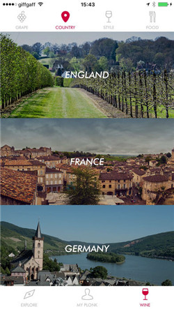 Plonk 对于葡萄酒入门者来说是个非常简单而实用的红酒 app。只须回答 3 个问题,便可找到更符合自己偏好的葡萄酒类型。除此之外,Plonk 的界面非常人性化,将葡萄酒按照葡萄、产地、类型、食物分为四大类,并按照葡萄酒的颜色显示。除了提供葡萄品种的原产地、品鉴记录之外,Plonk 还能提供实用的葡萄酒发音指南。Plonk 同样具有社交功能,相比 Delectable,Plonk 的用户比较年轻,展示的葡萄酒价格不会那么昂贵,氛围也更加轻松。