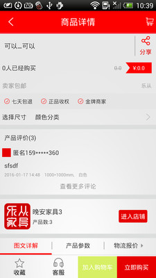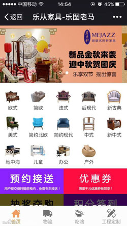 乐从家具app开发功能:商品详情、登录页面、家具物流、联系我们、在线支付等