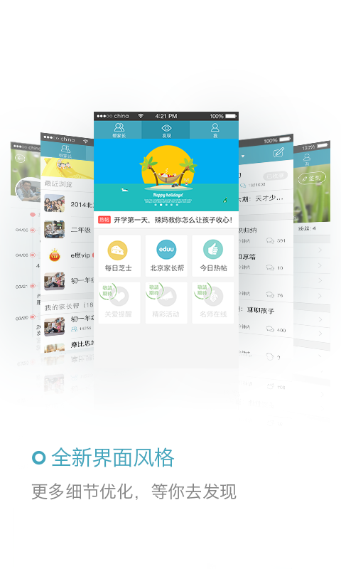 无论你是家有学生幼升小、小升初,或是面临中考的家长,在家长帮里都能找到与你一样的家长、教育专家和老师们,不分天南地北,不用四处奔波,掏出手机跟他们一起聊聊教育吧! 1、整合E度论坛(Eduu论坛),支持发贴回贴; 2、提供幼升小,小升初,中考3阶段的升学政策; 3、奥数题、真题、难题在线答疑; 4、重点小学、重点中学的升学攻略。
