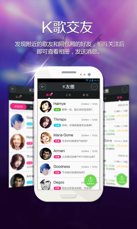 - 婉君 2018-03-06发表下班了刚好准备去ktv,听说下载个欢乐ktv app还不错支持[6] 反对[1] [引用]