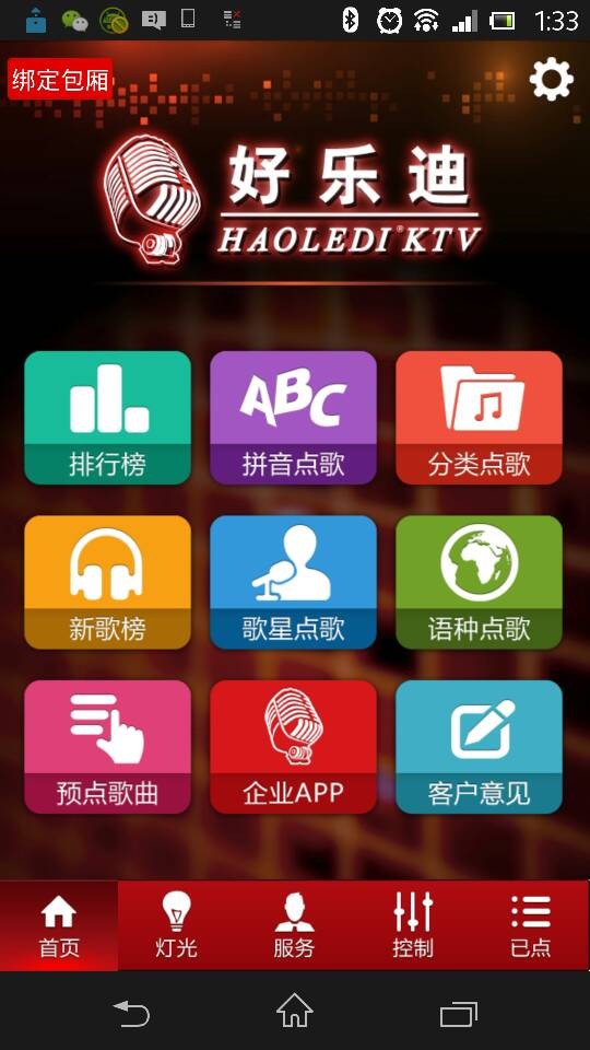1、让您的手机成为您在好乐迪KTV包厢内专属的点歌神器。 2、在好乐迪包厢中再也不用抢点歌台,只需扫描二维码立即绑定包厢点歌台,直接用手机选取7种点歌方式。 3、您也可以使用”预点歌曲”模式,随时随地的将歌曲预点好,进入包厢直接就可唱歌。