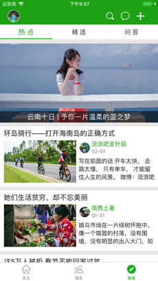 3、在青驿91直播看到的内容来自于你关注的用户和旅行地,千人千面,绝对没有重复和强制推送。当你发文时,内容会推送至你的粉丝,也会推送至旅行地页面,精准传天下;