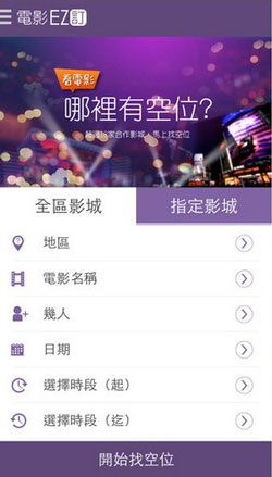 民宿EZ订app全台最大跨影城优惠电影订票平台:提供全台威秀、美丽华、in89豪华数位影城、乐声、 新民生、华威、宜兰新月等20多家以上电影时刻及线上订电影票服务,强档电影抢先线上选好位,超过19家以上合作银行信用卡,凭信用卡将可享最优惠电影订票服务,订票未取票不扣任何一毛钱,消费权益有保障。