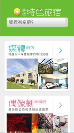 民宿EZ订app民宿/温泉推荐:精选民宿与温泉推荐,如媒体食尚玩家/中国时报採访与偶像剧16个夏天拍摄与口碑评选民宿,让您享订房优惠外又可住的安心。