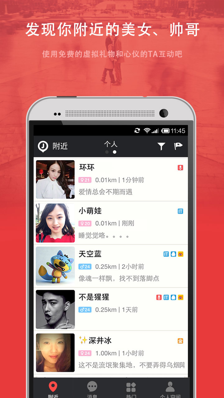 2. 当你外出的时候,可以通过微聚认识地铁对面心仪的TA