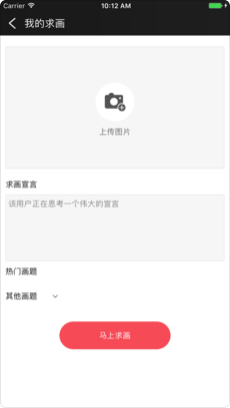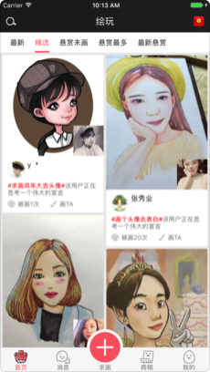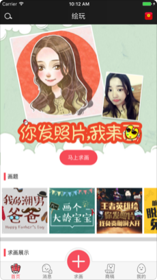 签下合同开发的社交APP平台,绘玩APP功能:1、用户可在App内免费求画;2、求画可分享给好友,让其帮忙扩散转发;3、画手可将作品上传至对应求画;4、画手可编辑个人资料增加自身关注度;5、作品可分享、点赞增加热力值;6、正式画手可以在红包雨列表抢红包;7、后续版本绘玩APP开发案例将上线打赏内购功能!