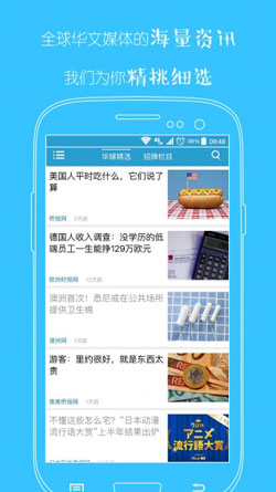 2、华舆有全球上百家华文媒体的资源库,编辑每天为你从海量信息中精心挑选优质内容。你还可以用过"精选城市"查看11个海外城市的全新资讯,是不是很酷;