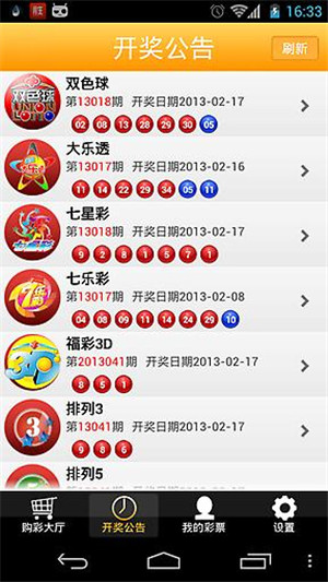 2.开奖公告——体彩、福彩、足彩、时时彩、高频彩开奖号码实时查询;