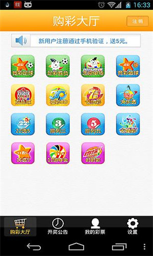 4.设置——注销登录,邀请好友试用,检测新版本,客服热线,软件说明与一般用户疑问解答,兑奖流程等说明。