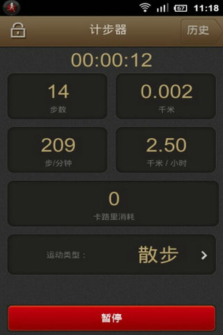 如果您是运动达人、酷跑族、爱美人士、热爱锻炼的人群以及想要保持完美身材的美女们,一定不要错过这款精美的减肥瘦身计步器瘦身减肥计步器可有效辅助提高您的运动效果,达到健康运动的目的。健身健康计步器通过手机重力传感器可以自动感应用户的行走或跑动次数,还可以实时显示各项运动参数:步行/跑步速度、步行/跑步距离、消耗卡路里(Calorie)热量等数据一目了然。有效的提高了你的运动质量。 特色功能: 1.步行计步器可自动感应您的行走或跑动次数、路程与速度; 2.跑步计步器可通过各项运动参数计算出您大概消耗多少热量; 3.健康计步器可按运动类型,可一键快速切换各种常见运动模式; 4.竞走计步器可以设置各项属性参数,贴合您的个性化需求 5.历史记录功能,保留每一次的记录数据,方便您的查阅; 6.一键锁定功能,锁定后可防止运动中不小心按到各按键。