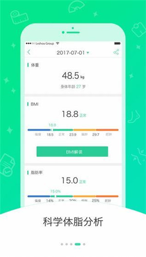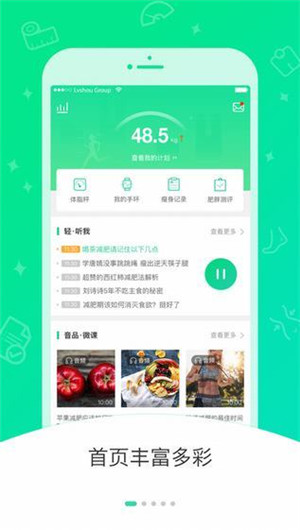 2、专属瘦身计划 减出曲线人生:结合体脂秤测量数据,好享瘦为你量身制定适合您的专属瘦身计划。