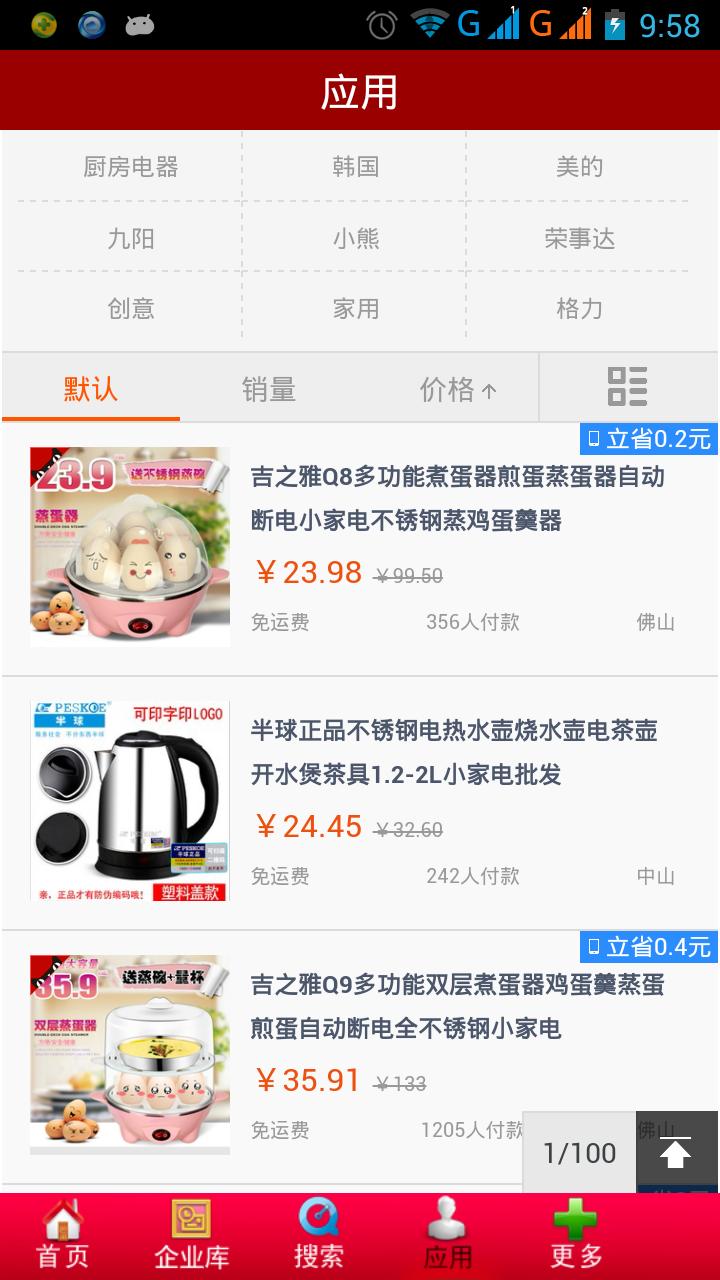 小家电网是中国家电行业信息最全面的专业网站,同时也是国内家电行业网站中的佼佼者,致力于为国内家电厂商提供最新、最快、最及时的电磁炉,抽油烟机,燃气灶具.空气净化器 加湿器 电暖风 暖风机 干手机 剃须刀 电熨斗小家电交易平台,提供的服务项目有小家电产品展示、小家91直播 展示、小家电新闻资讯、小家电售后查询、小家电维修服务以及技术资料等 【小家电求购】:各品种小家电的需求信息。 【小家电供应】:本应用利用列表的形式清晰向客户展示出各种产品的详细信息。 【小家电资讯】:本应用及时发布各类家电信息变化。