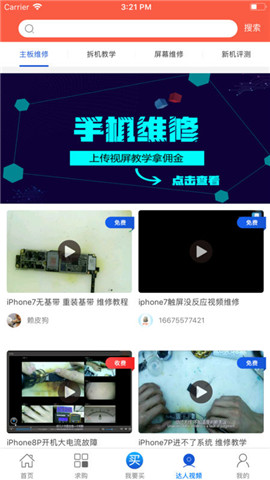 7、达人视频:学手机维修,看高手教学,在这里能学习到很多专业手机方面的教学视频。