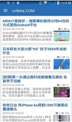 cnBeta.COM是科技新闻业界媒体的后起之秀,是国内领先的即时科技资讯站点和网友交流平台。消息速度快,报导立场公正中立,网友讨论气氛浓厚,在IT业界拥有独特的影响力。国内知名科技媒体 cnBeta 发布了新版 Android 客户端,宣称重写了所有代码。新版最大的变化在于侧边栏菜单的加入,用户可以在其中切换各类栏目。在新版中,界面底部会一直出现广告,且字体大小不能修改,在低 DPI 的设备上阅读体验不佳。