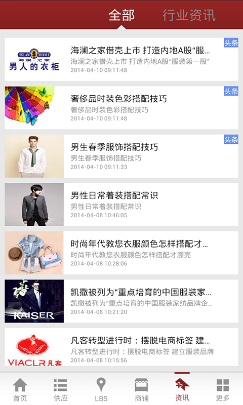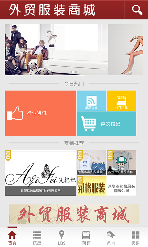 外贸服装商城——为您提供最新的外贸服装行业信息和资讯!行业资讯、供求商机、展会展览功能全面,是外贸服装行业的手机交流平台。为广大客户提供便捷和及时的外贸服装行业信息和资讯。以便捷的浏览方式、强大的应用功能,最新的资讯信息,为广大客户展开了一个丰富的外贸服装行业画卷,时时刻刻的为您更新,让您爱不释手。