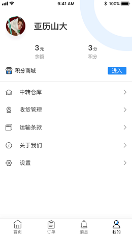 a.显示当前总积分。(积分来源于寄件,1公斤累计加1积分)