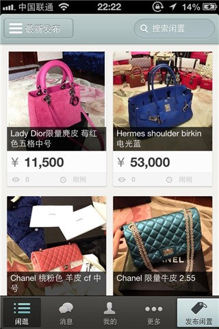 一键关注卖家或收藏商品,当你关注的卖家发布新的闲置或你收藏的商品有状态更新或价格变动时,都会收到推送通知,从此不再担心错过好的闲置宝贝。